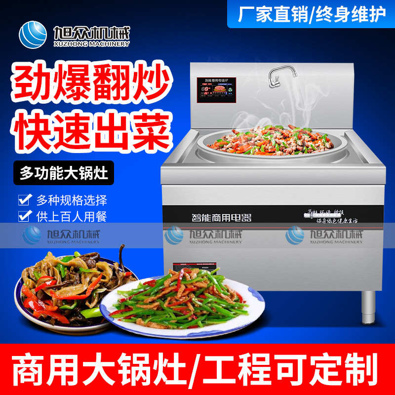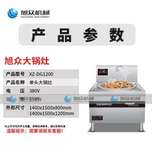 XZ-DG1200-大鍋灶,商用大鍋灶、猛火效率高。適用于酒店/食堂/工地炒菜,均勻翻炒,快速出菜工程可定制。勁爆翻炒快速出菜輕松解決百人用餐,人多也不怕。八檔磁控輕松控溫根據需求調節,操作簡單,效率更出眾。