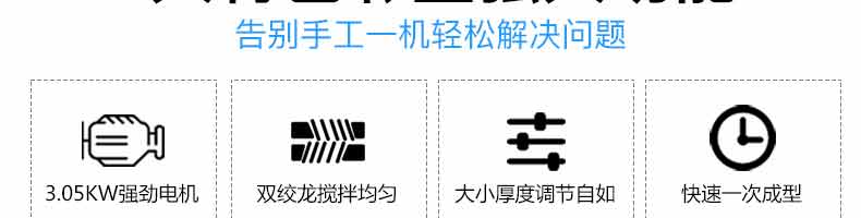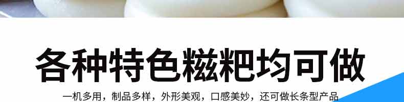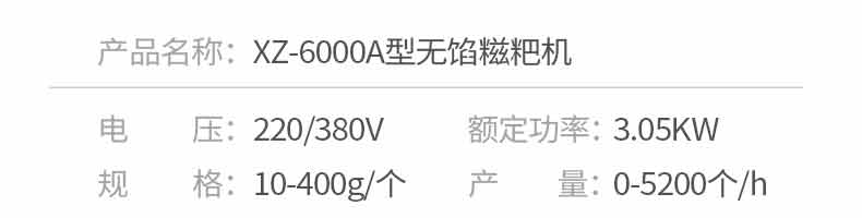 名稱6000A無餡糍粑機 電源220/380V 功率3.05KW 產量10-400g/個 尺寸 重量280kg 規格1560*1200*1300mm 其他