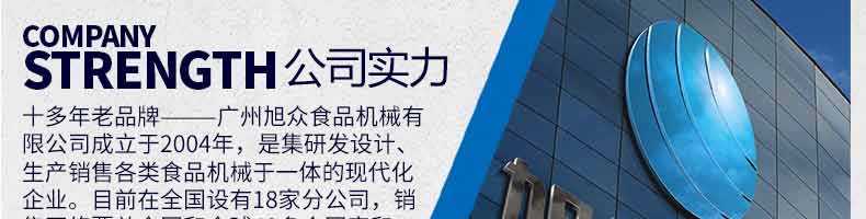 廣州旭眾食品機械有限公司是一家集科研開發,生產設計,營銷服務為一體的現代化生產企業。現代化生產車間,精湛制造技術,所產機械歷經市場重重考驗,不斷贏得海內外客戶的贊譽。