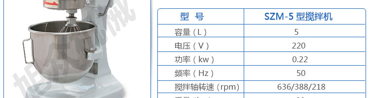 SZM-5型攪拌機,可用于攪拌奶油、蛋糕液、餡料及和制面團等操作。打蛋攪拌機等作攪拌食料、揉和面團之用,是生產優質糕點的理想設備,適用于酒店、飯店、學校部門、面包屋以及食品廠家。