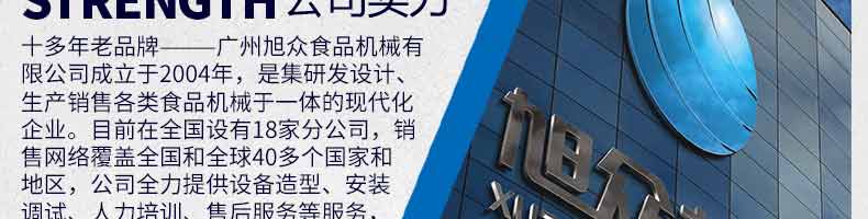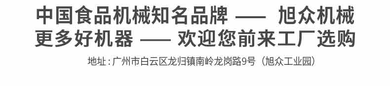 廣州旭眾食品機械有限公司是一家集科研開發,生產設計,營銷服務為一體的現代化生產企業。現代化生產車間,精湛制造技術,所產機械歷經市場重重考驗,不斷贏得海內外客戶的贊譽。