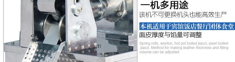 JGB-80型號餃子機,本機是一款可生產各種肉餡、肉菜混合餡、全菜餡及其他種餡餃子的設備。包制出來的餃子可蒸、煮、炸、煎等多種調理。適用于賓館、飯店、餐廳、團體食堂加工,幼兒園、速凍餃子生產。