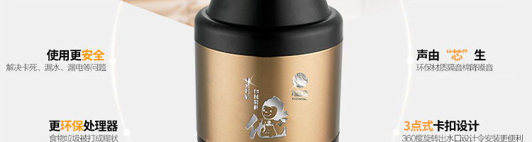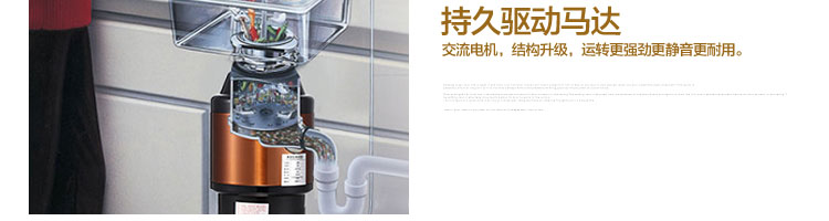 ACLQ56-廚房垃圾處理器,該機器是靠內部結構、零件組合達到處理垃圾的效果,通過碾、壓、擠、磨等系統的處理,在十幾秒內安全將食物垃圾處理成小于3毫米的顆粒,隨著水流排入下水道,使用十分安全。