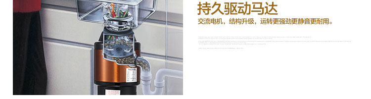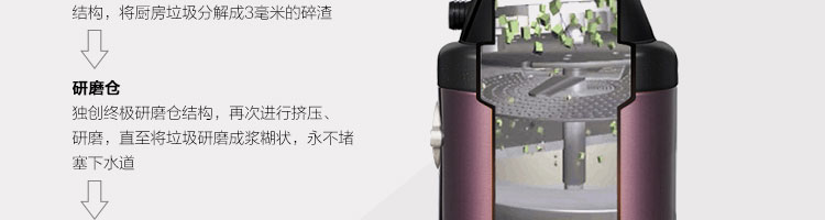 ACLQ75-廚房垃圾處理器,該機采用先進的研磨系統,采用特殊合金錘粉技術,能根據垃圾的強度,自動調節工作位置,處理垃圾的范圍和細度優良,品質性能穩定性強,產品暢銷多個國家和地區,得到客戶的廣泛認可。