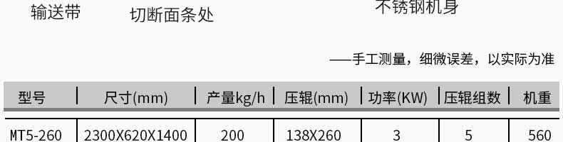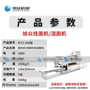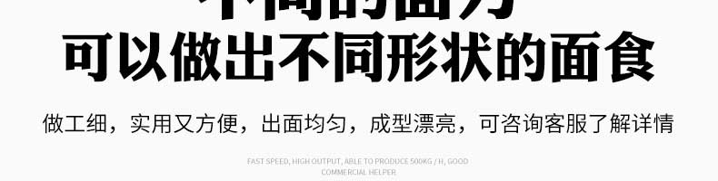 MT5-260型面條機(jī),不同的面刀可以做出不同形狀的面食做工細(xì),實用又方便,出面均勻,成型漂亮,可咨洵客服了解詳情