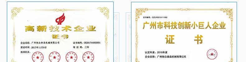 廣州旭眾食品機(jī)械有限公司是一家集科研開發(fā),生產(chǎn)設(shè)計,營銷服務(wù)為一體的現(xiàn)代化生產(chǎn)企業(yè)。現(xiàn)代化生產(chǎn)車間,精湛制造技術(shù),所產(chǎn)機(jī)械歷經(jīng)市場重重考驗,不斷贏得海內(nèi)外客戶的贊譽(yù)。