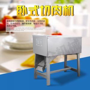 SX300B 臥式切肉機,臥式切肉機均采用雙滾刀結構,有臥式和立式兩種型式。各種款式切肉機原動力和刀梳、切肉部分的原理,結構大致相同,都具有結構緊湊,外形美觀、操作方便、效率高、耗電小、清潔保養容易、安全衛生、切肉效果好等優點。