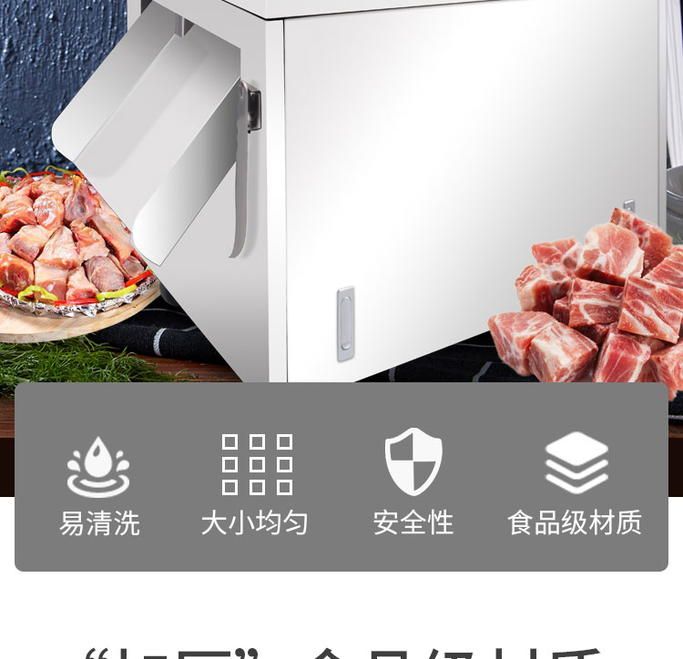 XZW-300魚禽類剁塊機,色禽類剁塊機適合切凍肉帶骨/不帶骨。“加厚”食品級材質(zhì)安全衛(wèi)生質(zhì)量保證。傳送帶推進物料提高效率節(jié)省力氣。