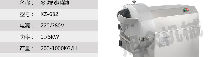 XZ-682多功能切菜機,設備可將根莖類蔬菜:如馬鈴薯、蕃薯、黃瓜、竹筍、洋蔥、茄子等切片、條、丁。設計周到,結構合理,機器壽命長。