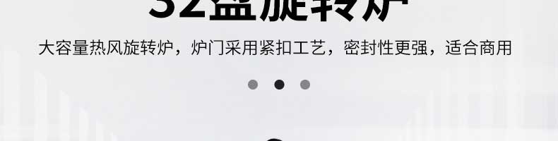 熱風旋轉爐系列,多項核心技術滿足您的需求大型熱風旋轉爐,雙風機設計,出口品質,準確調控,操作簡單。32盤旋轉爐大容量熱風旋轉爐,爐門釆用緊扣工藝,密封性更強,適合商用。