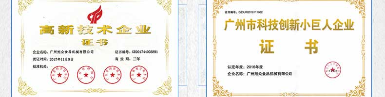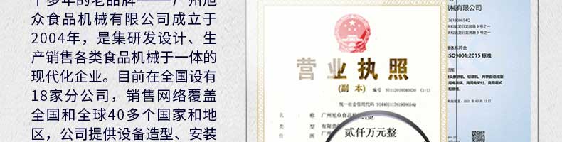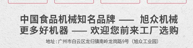 廣州旭眾食品機械有限公司是一家集科研開發,生產設計,營銷服務為一體的現代化生產企業。現代化生產車間,精湛制造技術,所產機械歷經市場重重考驗,不斷贏得海內外客戶的贊譽。