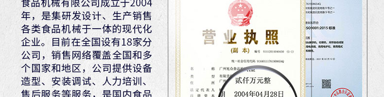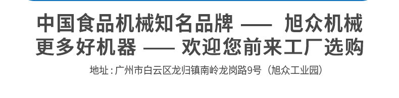 廣州旭眾食品機(jī)械有限公司是一家集科研開(kāi)發(fā),生產(chǎn)設(shè)計(jì),營(yíng)銷(xiāo)服務(wù)為一體的現(xiàn)代化生產(chǎn)企業(yè)。現(xiàn)代化生產(chǎn)車(chē)間,精湛制造技術(shù),所產(chǎn)機(jī)械歷經(jīng)市場(chǎng)重重考驗(yàn),不斷贏得海內(nèi)外客戶的贊譽(yù)。
